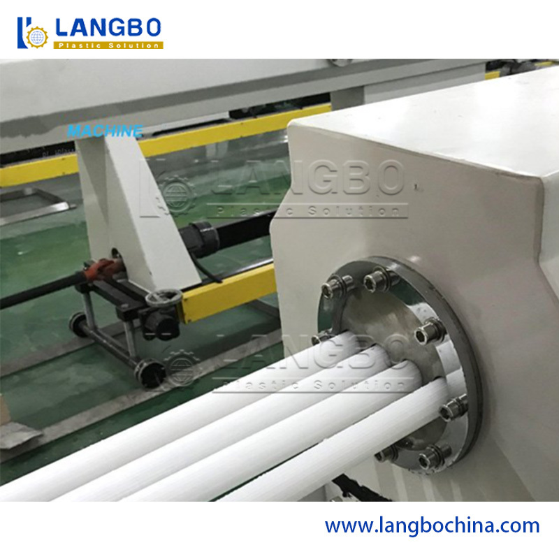 Il flusso del processo di questa linea è polvere di PVC + additivo - miscelazione - alimentatore di materiale - estrusore a doppia vite - stampo e calibratore - tavolo di formatura sottovuoto - macchina di trazione - macchina di taglio - rack di scarico.