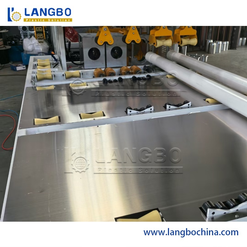 SGK Series Full Automatic Plastic Pipe Belling Machine is collocated with material-receiving pulling device as well as related process interfaces that are matched with the main machine, it not only can work together with the main machine, it can work solely at the same time; Horizontally moves pipes, stable and accurate actions, and not easy to hurt pipes; This machine adopts infrared ray heating way and it is a double-heating furnace, and each heating furnace is collocated with central heating furnace core; Adopts expansion tube head shaping way, with accurate dimension of nozzle; It has conversion switches of expansion solvent plug (direct type) and expansion flexibility sealing washer type plug (R type) in control panel, so it is very convenient to choose the way of tube expansion, with strong craft adaptability; Main electric control components adopt imported ones, with stable and reliable system performance.