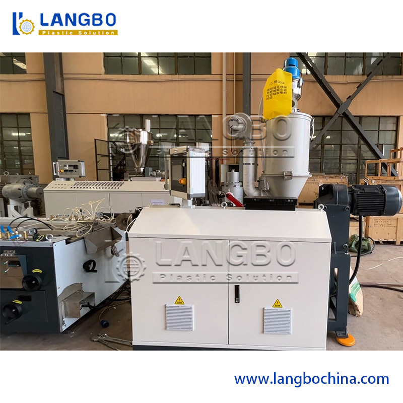 Nei paesi del Midwest, il mercato dell'illuminazione a LED è vasto e la domanda è enorme. Per le luci a LED, il coperchio e il profilo inferiore sono realizzati in materiale PC. Il tubo a LED in PC bicolore richiede tecniche di coestrusione. Per questa linea, è dotata di un estrusore da 65/28 da 22kw e un altro estrusore da 50/28 da 11kw. La coestrusione garantisce il profilo bicolore. Adottiamo un tavolo di calibrazione lungo 2500 mm e largo 600 mm. Per la macchina di trascinamento, si tratta di un metodo di trascinamento a due cinghie. Ciò garantisce che il coperchio e il tubo inferiore della luce a LED si fissino saldamente l'uno all'altro. Alla fine, abbiamo un'unità di taglio e un impilatore per appoggiare il profilo in PC finito.DESCRIZIONE DEL PRODOTTO: